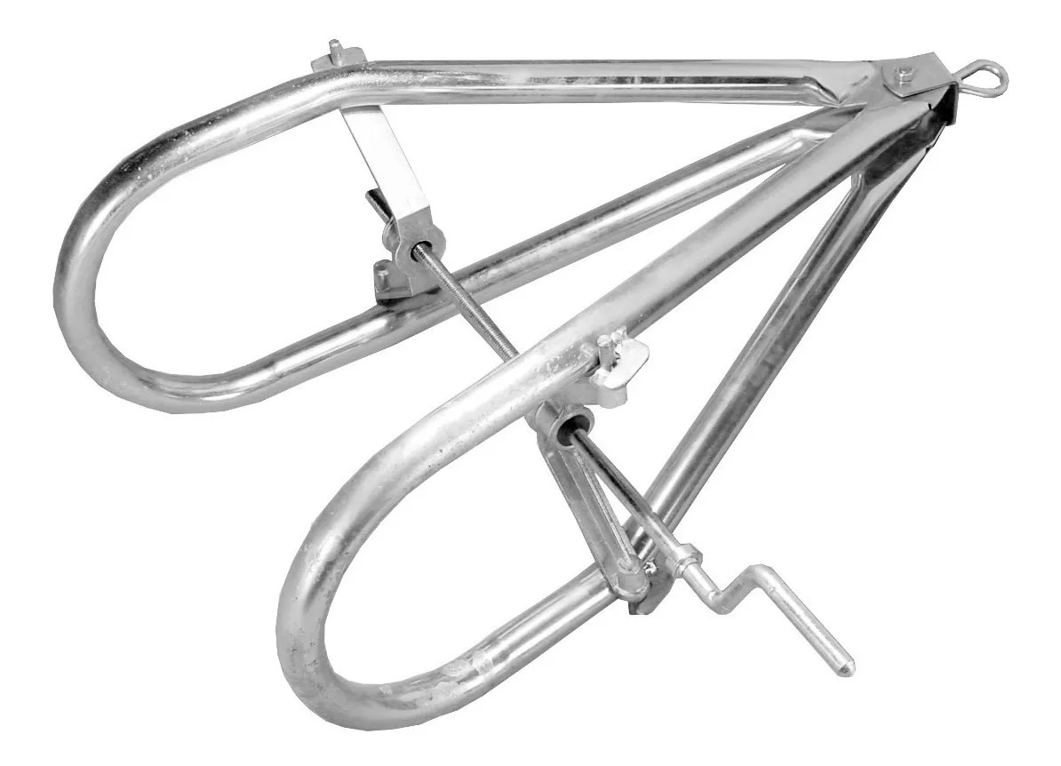 O equipamento levanta o animal pelas ancas, utilizando um sistema de suspensão conectado a um trator ou polia. É indispensável em situações que impedem o animal de se levantar sozinho.